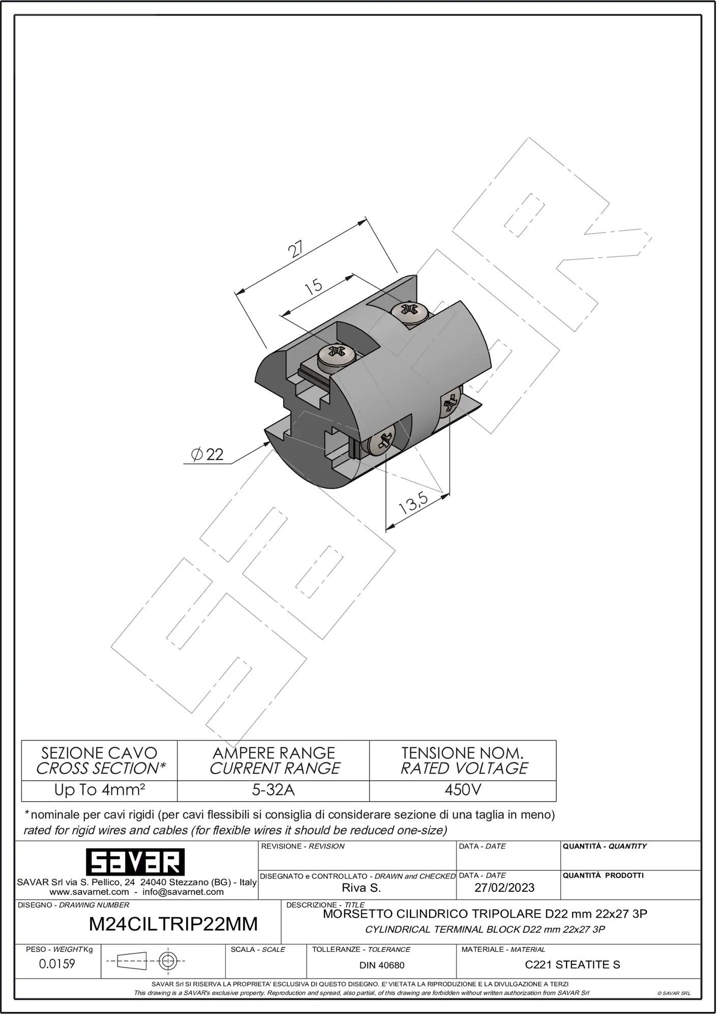 Die Klemme blockieren dreipolige (Pins) in Steatit-Keramik. In der Industrie werden Anwendungen mit extrem hohen Temperaturen wie Öfen, Heizungen, Thermoelementen und Thermowiderstanden eingesetzt.