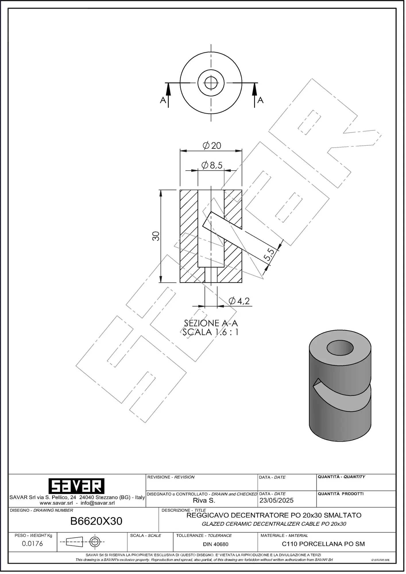 Ceramic "V" cable holder decentralizers for ceiling and wall are exclusive to Technicalceramic and are handcrafted one by one, imperfection and slight differences are a characteristic of these insulators that makes them unique in their kind.