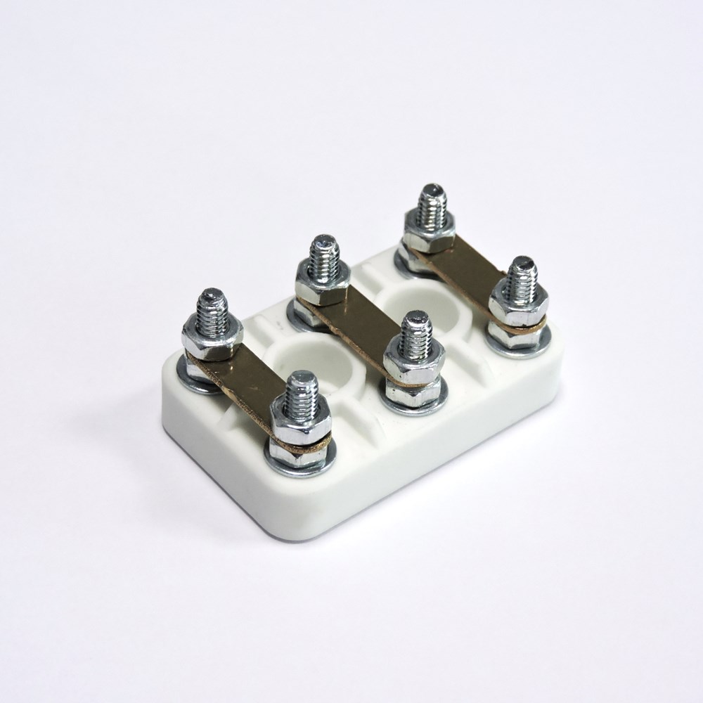 These terminals allow the connection star-delta three-phase motors or two separate motors. Thanks to the excellent thermal resistance properties conferred by ceramics, they find application in machinery such as electric ovens, motors with high operating temperatures, equipment where very high temperature resistance is required, such as smoke and heat extraction fans. These terminal blocks are also used for star-delta switching of three-phase heaters.