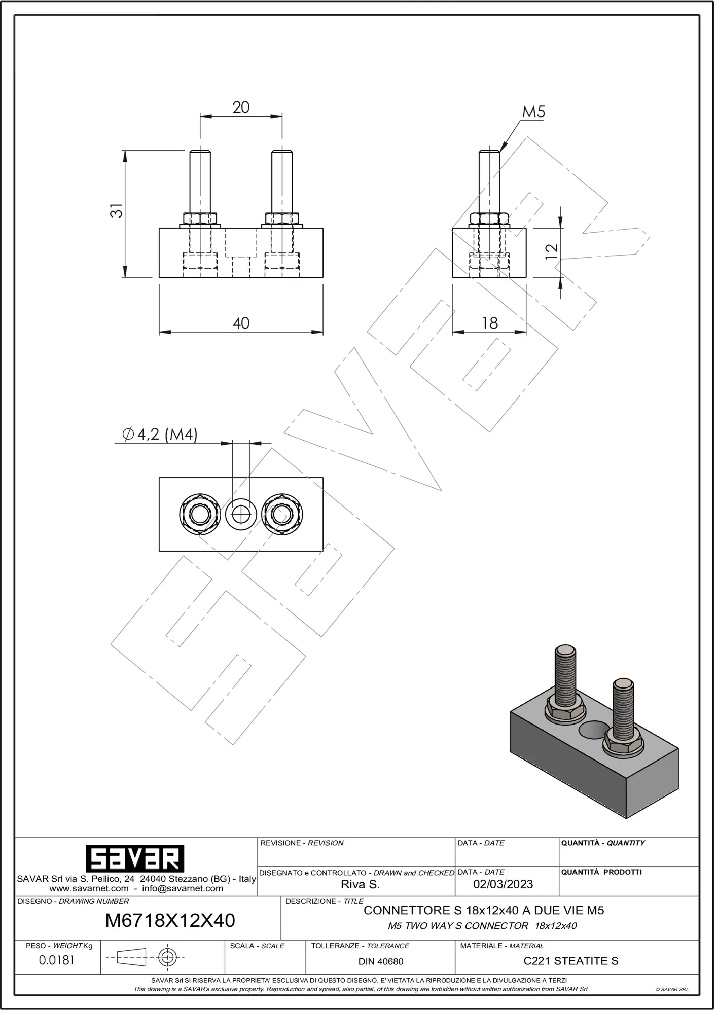 Conectores de dos maneras en cerámica de esteatita. En el sector industrial se utilizan en aplicaciones a temperaturas extremadamente altas, como hornos, calefactores y dispositivos eléctricos.