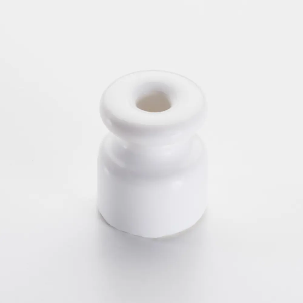 Aislante cerámico para sistemas eléctricos expuestos utilizado para la instalación con trenzas de seda. Los aisladores deben fijarse a la pared, techo o viga de madera con un tornillo o clavo cada 35-40 cm aproximadamente para tensar el cable trenzado. (No recomendamos superar los 50 cm entre dos aislantes, especialmente para fijar el cable trenzado en posición horizontal). El sistema eléctrico exterior es una elección dictada por el gusto, en algunos casos también por necesidades arquitectónicas debido a la necesidad de mantener intacta la pared sobre la que se va a construir el sistema: por ejemplo, la renovación de casas históricas, castillos, casas de campo, casas de campo y casas, en presencia de muros de piedra, ladrillo o madera.