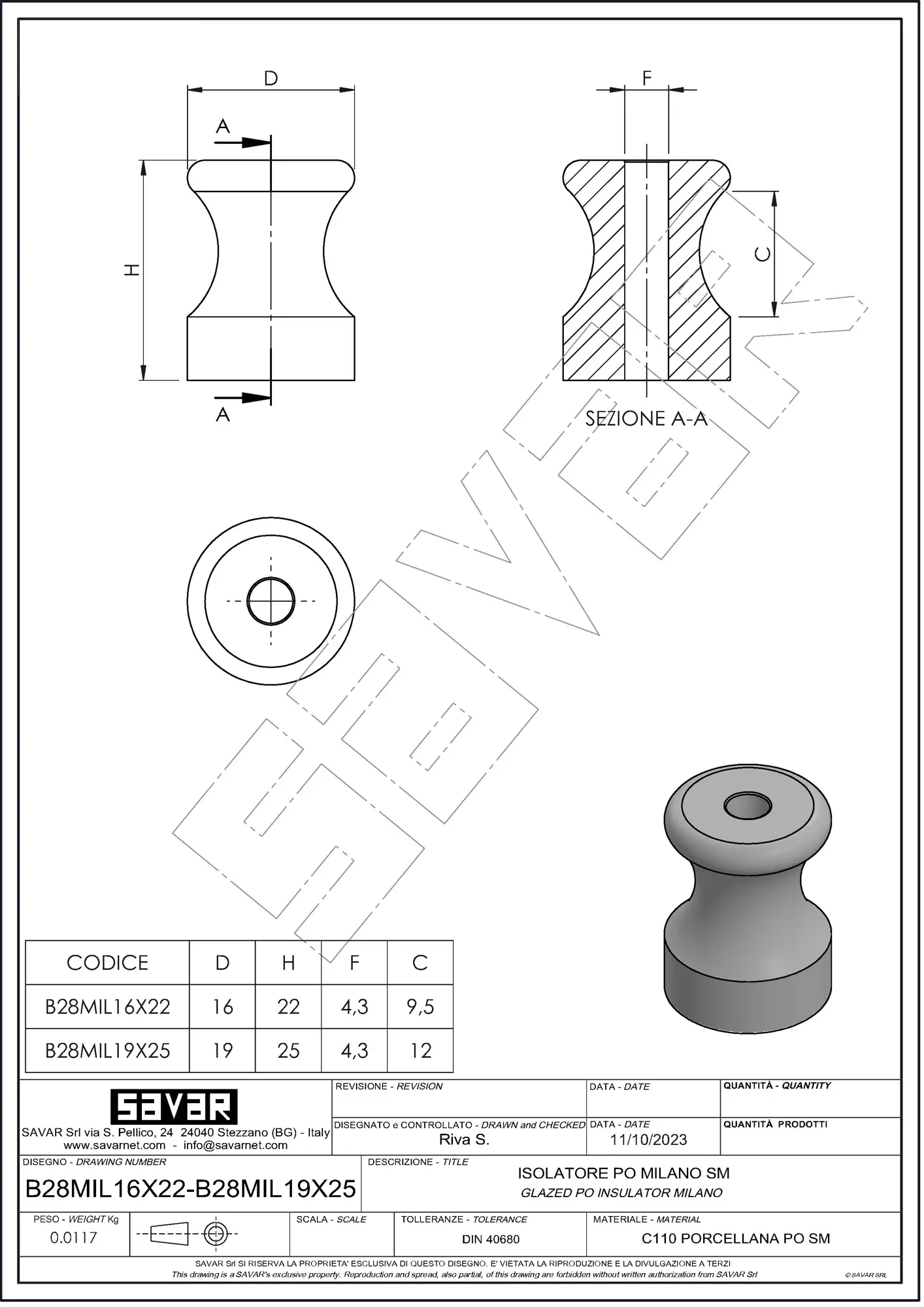 Aislante de porcelana  tipo Milan para sistemas eléctricos visibles utilizado para la instalación con trenzas de seda. Los aisladores deben fijarse a la pared, techo o viga de madera con un tornillo o clavo cada 35-40 cm aproximadamente para tensar el cable trenzado. (No recomendamos superar los 50 cm entre dos aislantes, especialmente para fijar el cable trenzado en posición horizontal). El sistema eléctrico exterior es una elección dictada en algunos casos también por necesidades arquitectónicas debido a la necesidad de mantener intacta la pared sobre la que se va a construir el sistema: por ejemplo, la renovación de casas históricas, castillos, granjas, casas de campo y viviendas, en presencia de muros de piedra, ladrillo o madera.