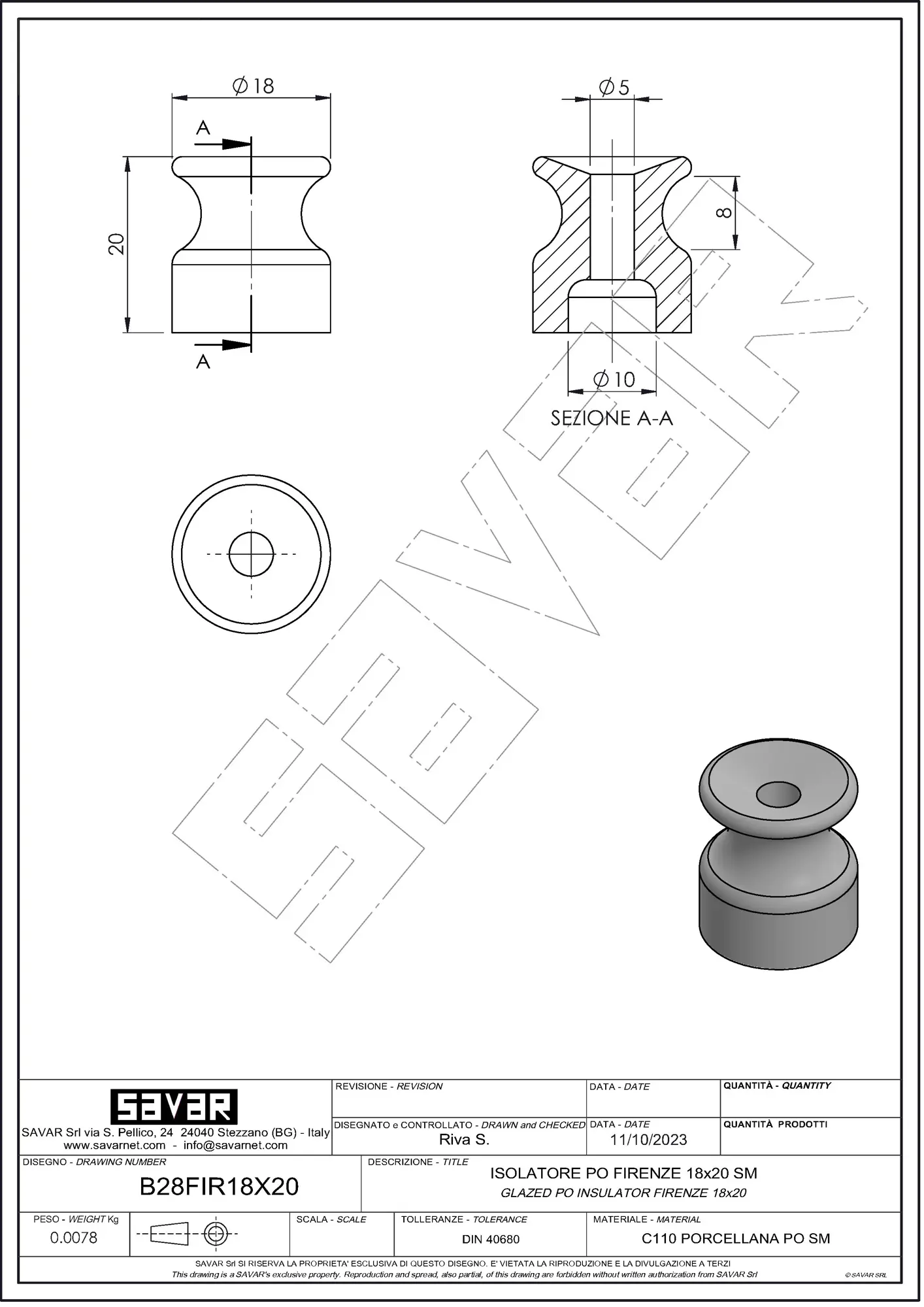 Los aislantes cerámicos SAVAR se fabrican uno a uno a mano; la imperfección y las pequeñas diferencias son una característica de estos aislantes que los hace únicos en su tipo. A petición, fabricamos aislantes cerámicos de cualquier color y tamaño para la construcción de tus sistemas eléctricos.