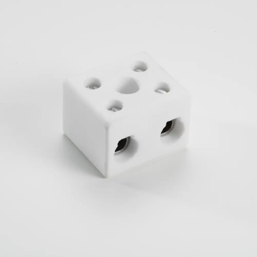 Bloc terminal bipolaire en céramique technique, pour la connexion des câbles électriques dans les réseaux de distribution civils et industriels. Cette pince, grâce à l’excellente résistance thermique conférée par le corps céramique, est utilisée dans des machines telles que les fours électriques, les chauffages électriques et les équipements nécessitant une haute résistance à haute température.