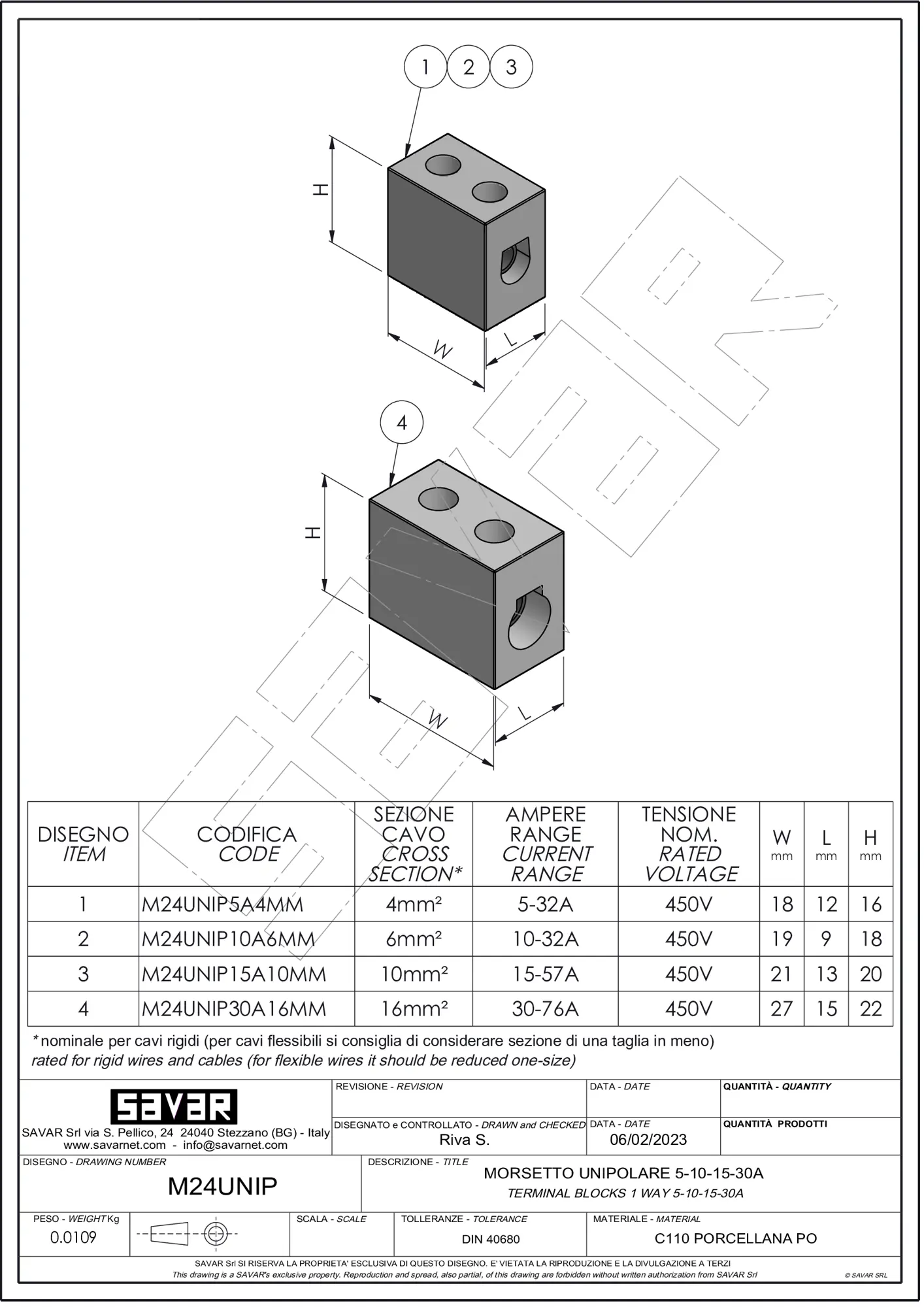 Bloc de borniers monocylindre en céramique technique, pour la connexion de câbles électriques dans les systèmes de distribution civils et industriels. Cette pince, grâce à l’excellente résistance thermique conférée par le corps céramique, est utilisée dans des machines telles que les fours électriques, les chauffages électriques et les équipements nécessitant une haute résistance à haute température.