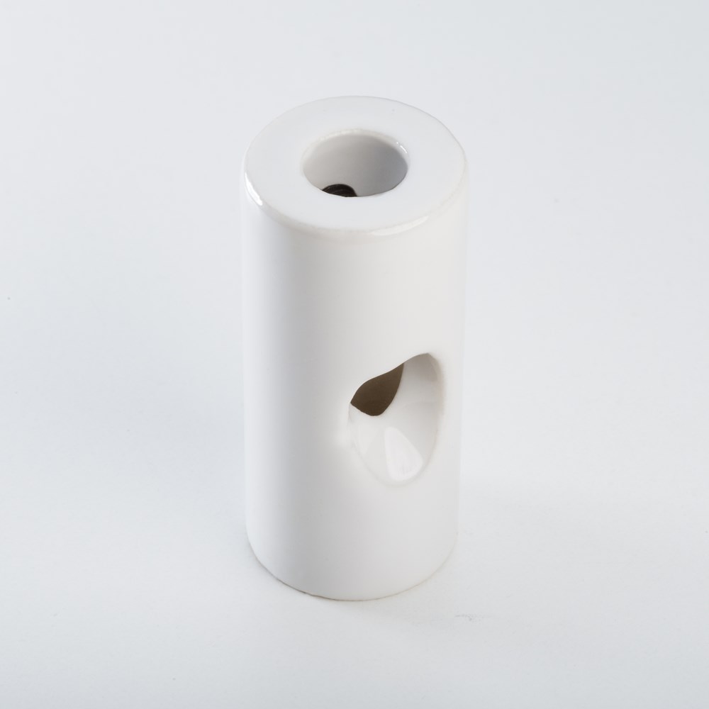 Decentratore reggicavo a soffitto in ceramica per impianti elettrici a vista utilizzato per installazione con cavi singoli.