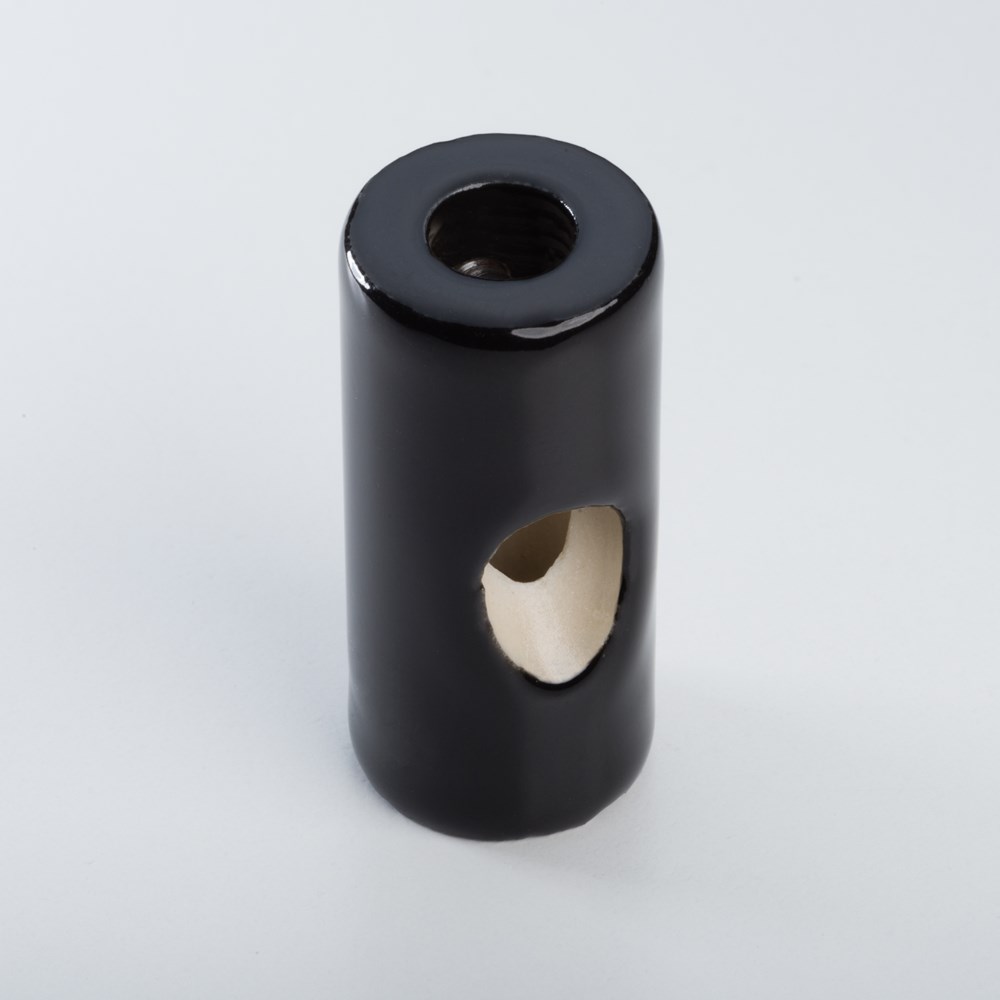 Decentratore reggicavo a soffitto in ceramica per impianti elettrici a vista utilizzato per installazione con cavi singoli.