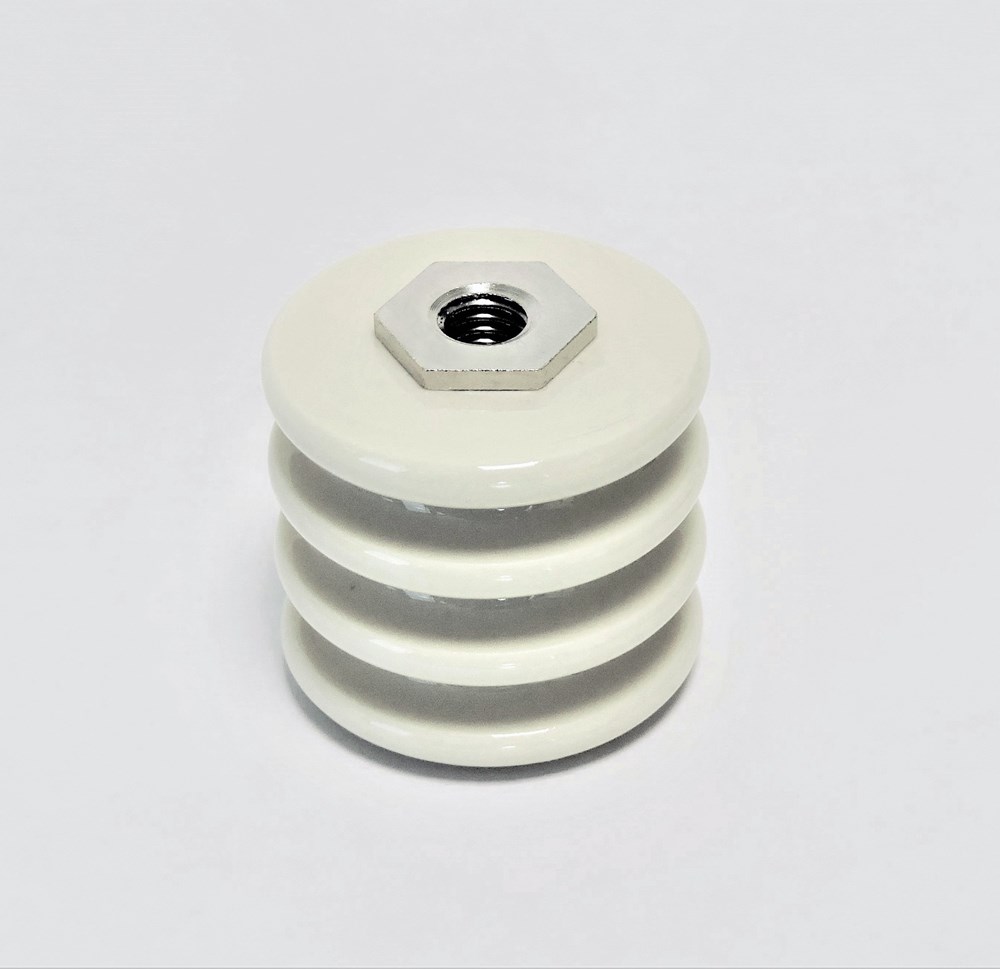 Isolatore ceramico portante con inserti in ottone nichelato M10.