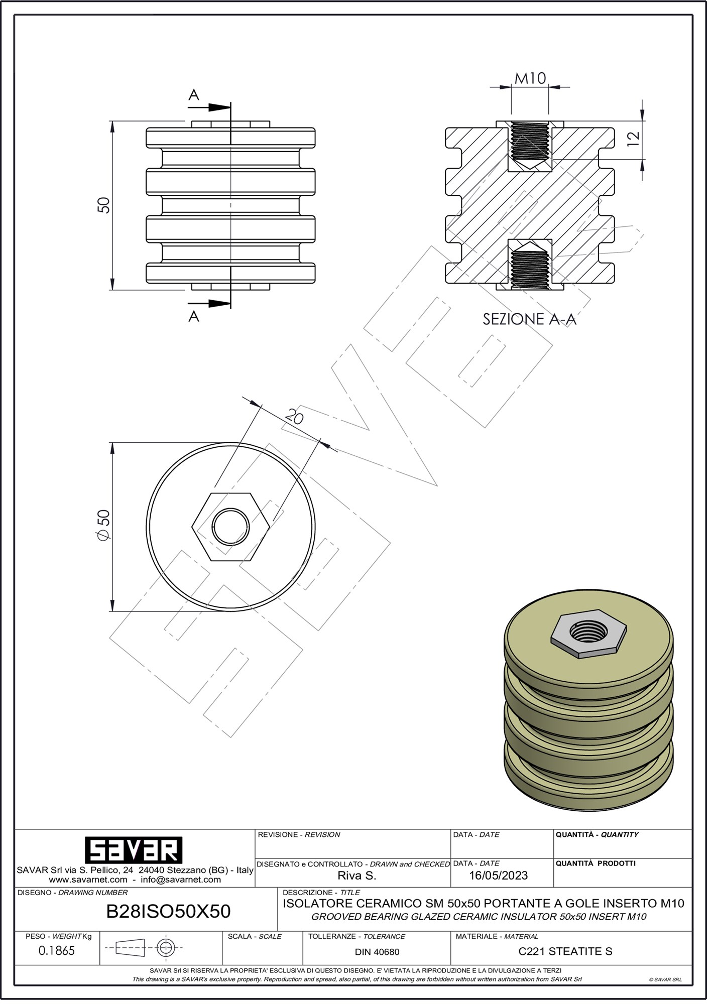 | Materiale corpo isolante | Ceramica tecnica C221 |