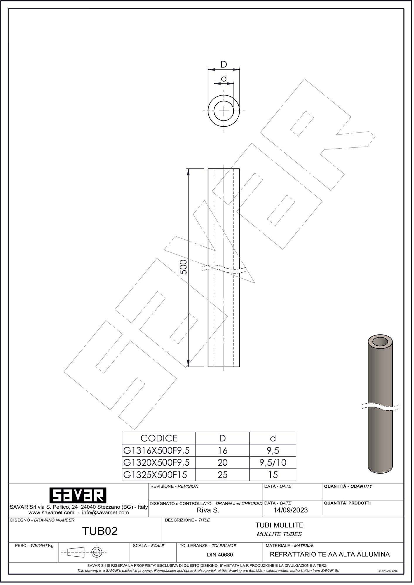 Sono tubi di vari diametri tutti con lunghezza 500mm in ceramica mullitica al 73% di allumina utilizzati per resistenze elettriche e supporti nel settore forni industriali e forni elettrici.